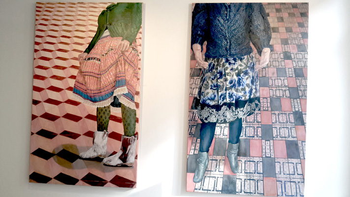 José Krijnen creëert een eigen gebarentaal door het schilderen van gebarende mensen in landschap vol patronen en structuren en met fijn uitgewerkte stofuitdrukkingen.